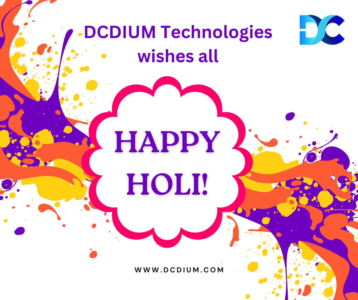 May the festival of colors brighten your life with happiness, health and success. May you are blessed with peace and prosperity. DCDIUM Technologies wishes all Happy Holi.